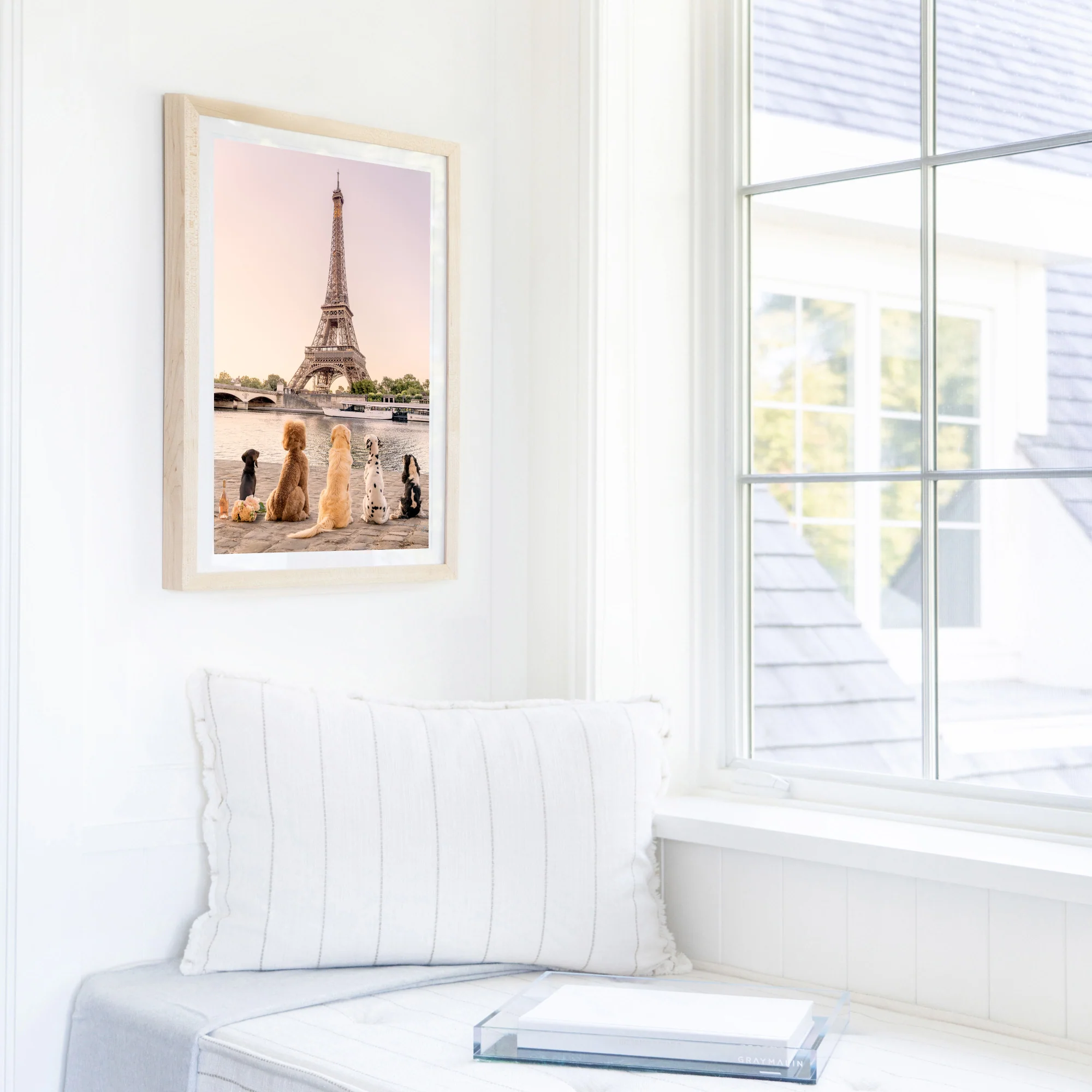 Stroll along the Seine with âSeine River Sunset, Paris,â a romantic fine art photography print from Gray Malinâs âDogs of Parisâ series. This piece features a picturesque sunset view of the river, complete with flowers and a bottle of rosĂ©, creating a sense of Parisian charm and elegance. Perfect for those who love the City of Light, this print brings a dreamy, romantic atmosphere to your decor.