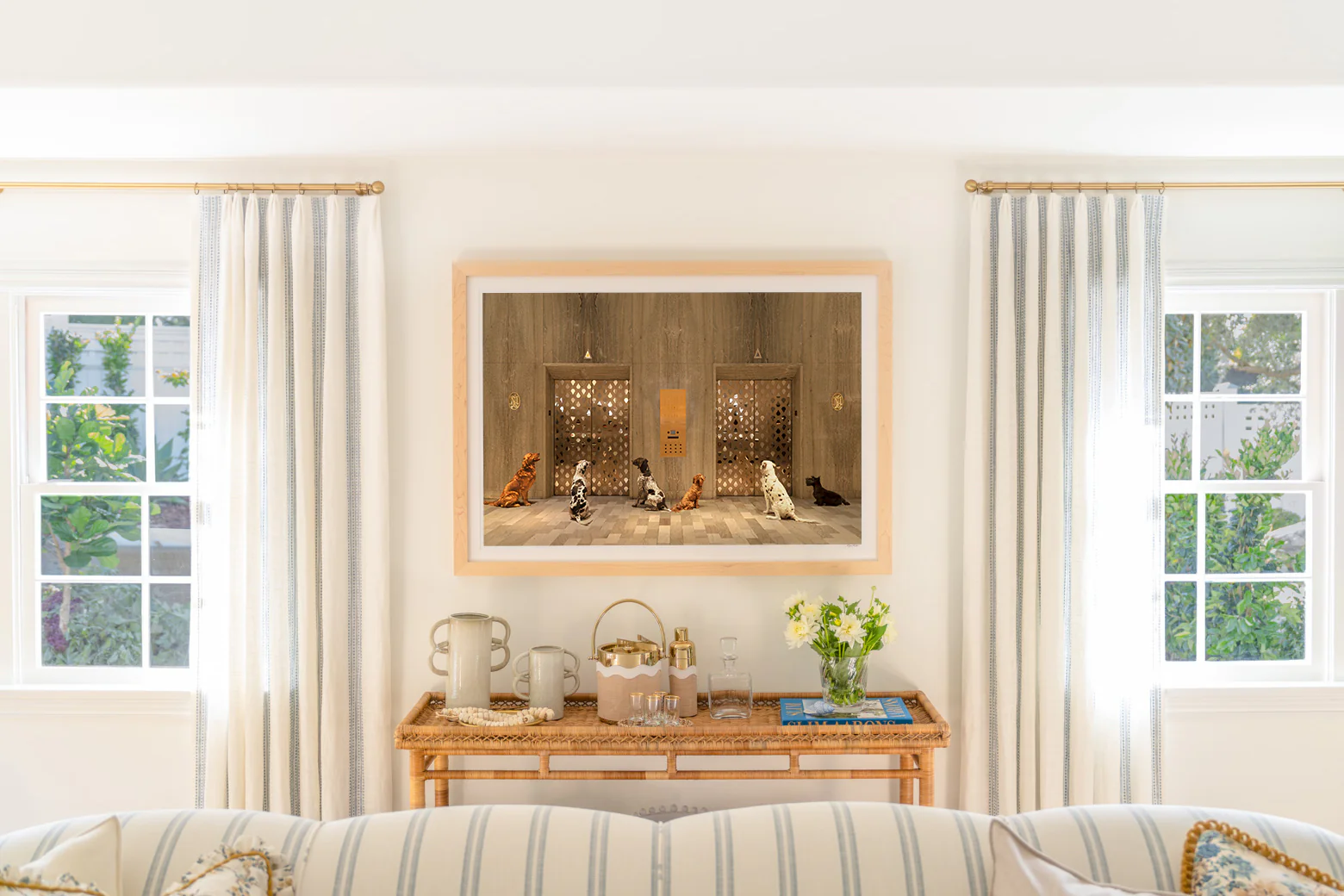 These chic canines take in the glitz and glamour of an iconic downtown Dallas shopping destination before they begin an unforgettable day of shopping in The Elevators, Neiman Marcus, Downtown Dallas, a fine art photography print from Gray’s playful series, Gray Malin at Neiman Marcus.