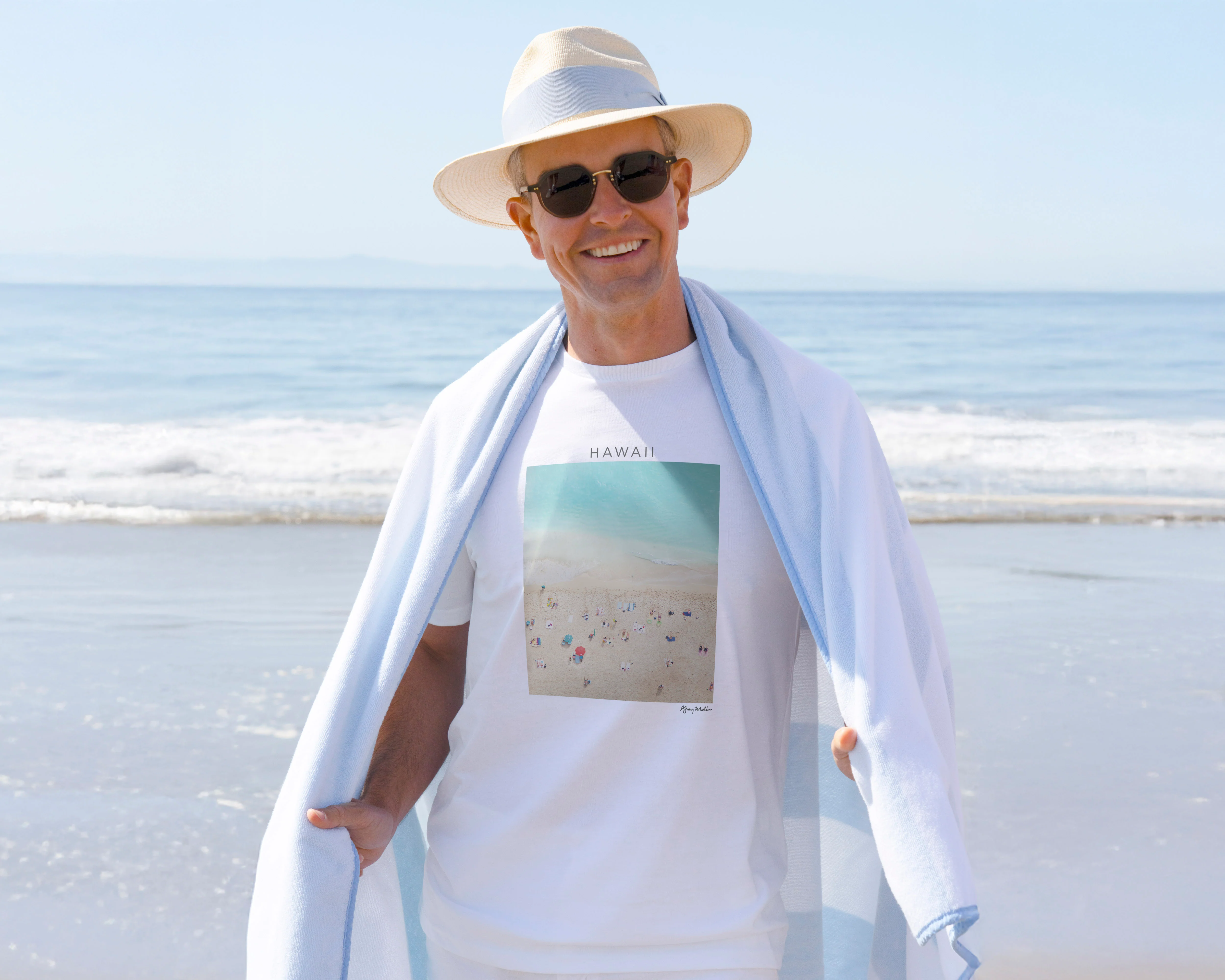 Embrace the charm of Pacific Islands with The Hawaii Tee by Gray Malin. Crafted from luxuriously soft, premium cotton, this effortlessly chic white T-shirt features a fine art photography print from Gray’s iconic Hamptons collection, capturing the pristine beaches, charming shingled cottages, and timeless elegance of this beloved seaside escape.