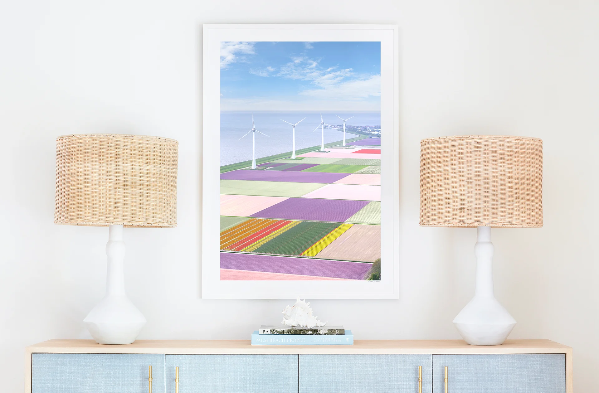 Enjoy endless views of windmills and flowers Windmills, Dutch Tulip Fields, Netherlands a fine art photography print from Gray’s colorful series, Dutch Tulip Fields, shot from a helicopter above the iconic tulip fields of The Netherlands.